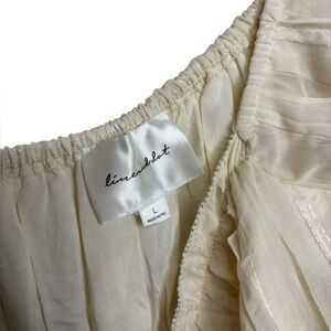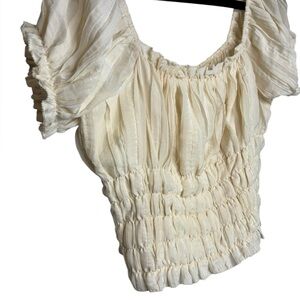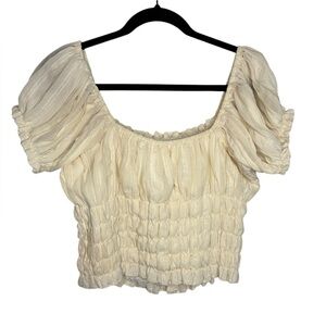 Line and Dot Cream Smocked Puff Sleeve Crop Size Large