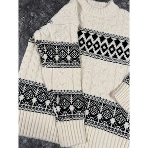 Line and Dot Montana Faire Isle Oversized Cable Knit Sweater Ribbed Trim XS