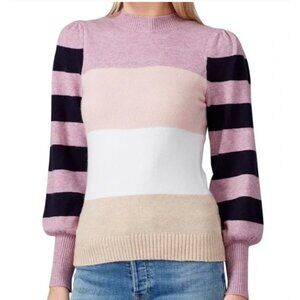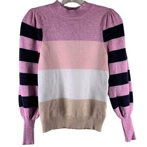 Line and Dot Pink/Multicolor Stripe High Neck Sweater Size Small