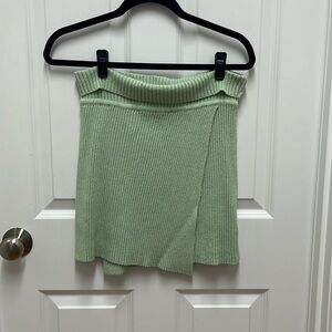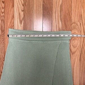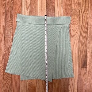 Line and Dot Ribbed Pull Up Faux Wrap Sage Skirt