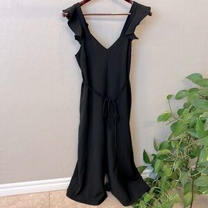 Revolve Line and Dot cropped jumpsuit, wide leg, ruffled straps, relaxed fit, black, Size S