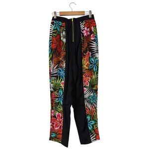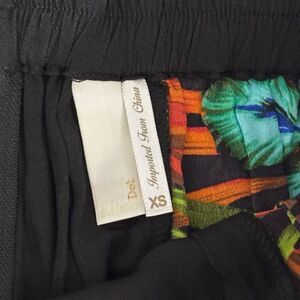 Line & dot Pant black Rainbow Tropical 100% silk elastic waist pockets size XS n