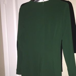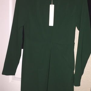 Line & dot long sleeve mini dress in a dark hunter green color. Fitted. Unfortunately won't be able to model as it is small for me. Zipper closes in the back.