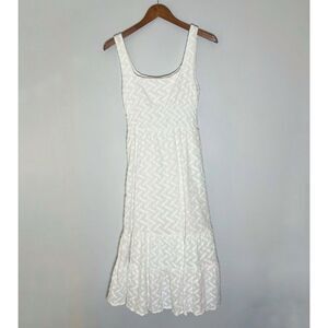 Line And Dot White Textured Tiered Summer Dress Size Medium New