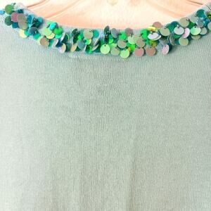 Trimmed with beautiful irridescant Aqua Blue-Green large festive sequins.