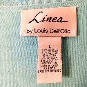 Linea 3 Pc Formal Cardigan Sweater Set Sz L AQUA SKY BLUE Sequins Knit was $350