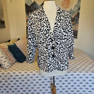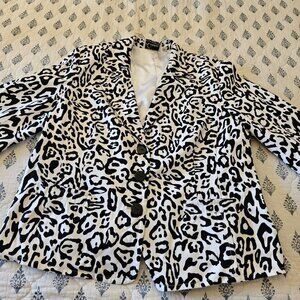 Linea Animal Print Cotton Blazer XL – 3/4 Sleeve Button Front Jacket Safari Chic