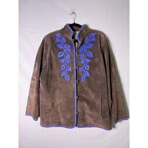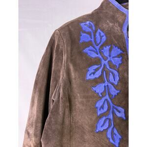 Linea By Louis Dell’ Olio Oversized Gray Blue Leather Suede Embroidered Jacket Size Medium