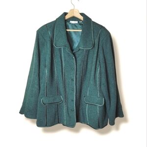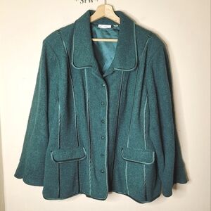 Linea by Louis Dell’Olio coat, women’s plus size 3X coat, green wool blend jacket, emerald green winter coat, satin trim jacket, holiday party coat, elegant dress coat, vintage glam outerwear, plus size classic topper, preppy sophisticated coat, 90s style green coat, timeless women’s outerwear