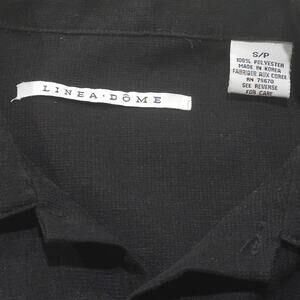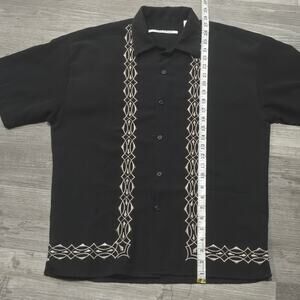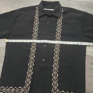 Linea Dome Black Pattered Short Sleeve Button Down Collared Dress Shirt. Good preowned condition, does have a couple faint spots (may come out in wash)
