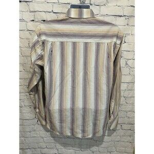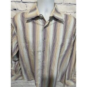 Linea Dome Shirt Men's Cream Purple Yellow Striped Button Up, Long Sleeve Medium