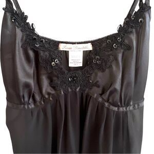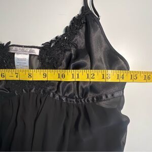 Linea Donatella Babydoll Chemise Top Size S Black Satin Lace Trim Whimsigoth Y2K