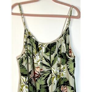 Linea Donatella Green Tropical Print Sleeveless Straps Maxi Slip Dress Size L