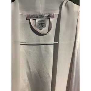 This Linea Donatella Long Blush Satin Pearl Lace Bridal Peignoir Robe in size M is a luxurious and elegant option for brides, new moms, and those seeking a silky and romantic garment. The robe features a solid pattern with a beautiful sheer neckline and long sleeves with pearl beading and appliqué creating a classic and romantic look perfect for summer, fall, and spring. Made of lightweight polyester satin fabric, it includes beaded, embroidered, and appliqué accents, adding a touch of sophistication to the design. The robe is machine washable and comes with a belted closure, making it both stylish and practical for any special occasion.