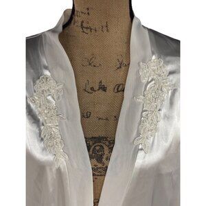 Linea Donatella Long White Satin Embellished Robe W/ Floral Lace Appliques