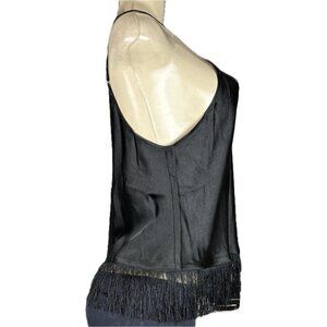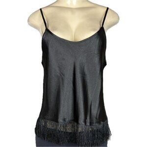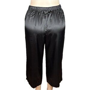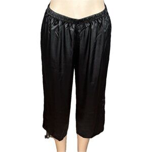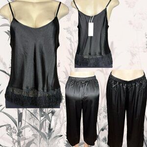 ITEM: Linea Donatella M Black Satin Crop Fringe Hemline Camisole- Capri Pants PJ Set