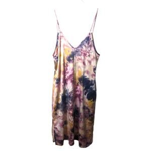 Linea Donatella Maxi V Neck Slip Nightgown Colorful Tie Die Pattern NWT Large