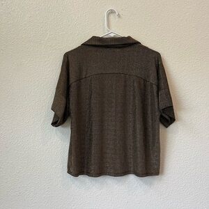 Chic metallic blouse by Linea Donatella. Features a button-up front and short sleeves. Perfect for elegant occasions.
