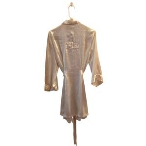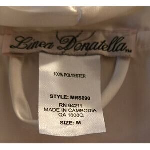 This is a beautiful Linea Donatella "Mrs." Robe in a size medium. It is in great condition and comes from a smoke-free and pet-free home. Perfect for lounging around the house or as a cover-up. The soft polyester material will keep you comfortable all day long. Don't miss out on this amazing deal!