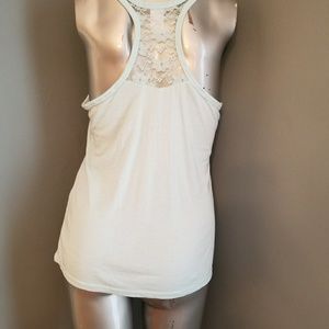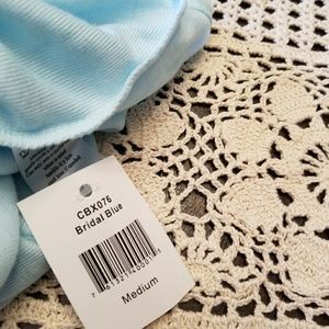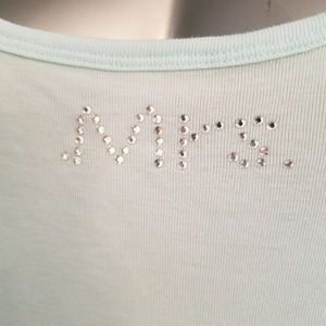 Light blue lace racer back tank top with (mrs.) Rhinestone text on front. NWT. perfect something blue gift for any bride. Size medium. Soft material.