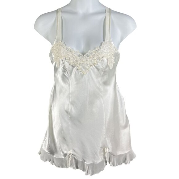 Linea Donatella Womens M White Cream Lace Coquette Satin Slip Dress Chiffon Trim