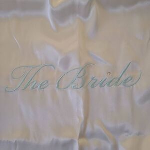 Linea Donatella Women's Satin Robe Embroidered "The Bride" Belted White S/M