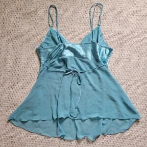 Blue satin sheer embroidered camisole top