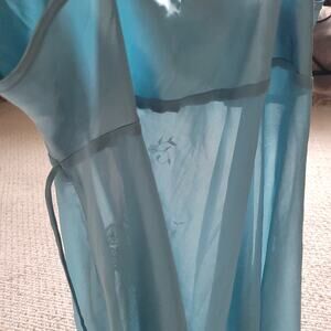 Linea Donatella Womens XL Blue Slip Dress Mini Babydoll Camisole Floral Satin