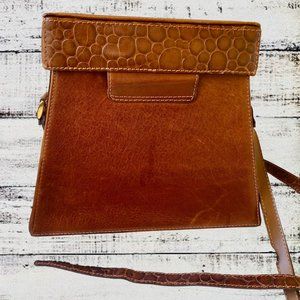 Linea Gani Brown Leather Hard Case Handbag Vintage 70's Crossbody Croc Trim