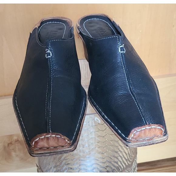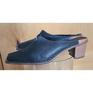Linea Italian Black Leather EU 39 US 8.5 Square Toe Mules Made Italy Block Heel