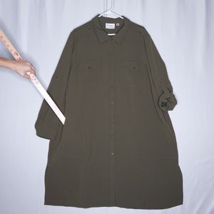 Linea Louis Dell Olio Tunic Top Women 3X Army Green Button Collar Pocket Long Sleeve Roll Tab Stretch Shirt