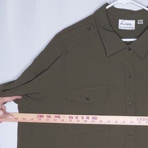 Linea Louis Dell Olio Tunic Top 3X Army Green Button Collar Pockets Roll Tab