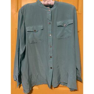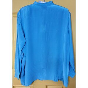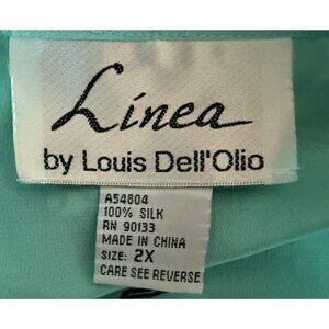 Linea Louis Dell'Olio Blouse Top Size 2X Button Up Silk Tiffany Blue