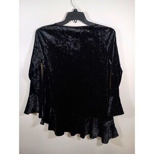 Linea Louis Dell'Ollio Velvet Asymmetrical Flutter Sleeves Black Top Size Small