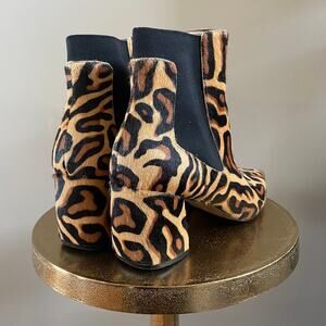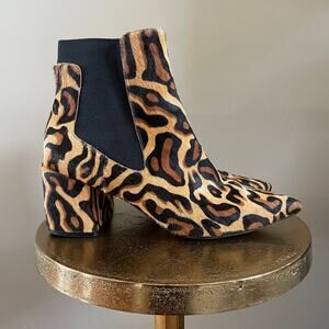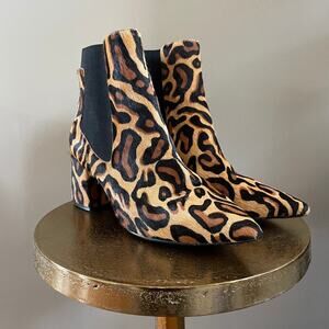 Linea Paolo 9.5 Leopard Calf Hair Ankle Boots | Pointed Toe, Chelsea, MSRP $170