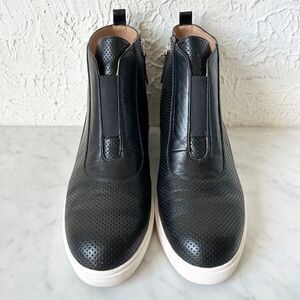 Linea Paolo Anna Wedge Sneaker Black Perforated Leather Zip - Women’s Size 10.5