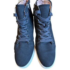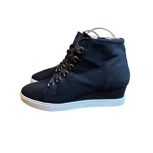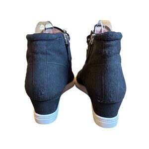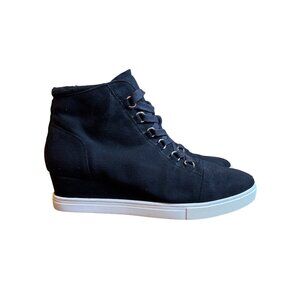 Linea Paolo Black Suede Booties Wedge Sneakers Black Suede lace Up Zipper Closur