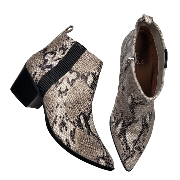 Linea Paolo | Cream Black Snake Print Leather Pointed Toe Ankle Booties 6.5