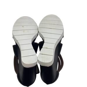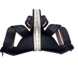 Linea Paolo Elana Black Leather Clear Strap Wedge Sandals Women's Size 6.