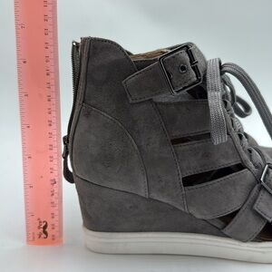 Linea Paolo Fave Cutout Suede Wedge Sneaker Bootie Zipper Buckle Womens size 9