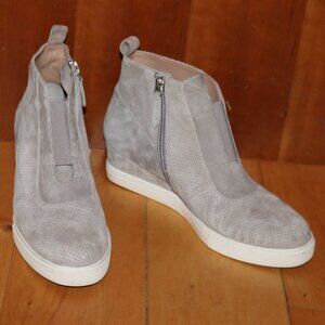 Linea Paolo Felicia Grey Perforated Suede Wedge Side Zip Bootie Sneakers Sz 7.5