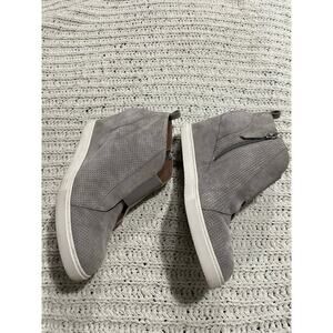 Linea Paolo Felicia Perforated Wedge Sneakers Suede Womens Sz 10 Gray Side Zip