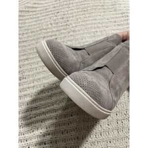 Linea Paolo Felicia Perforated Wedge Sneaker Heel Suede Booties Women's Size 10 Gray Side Zip