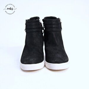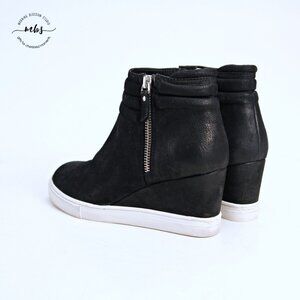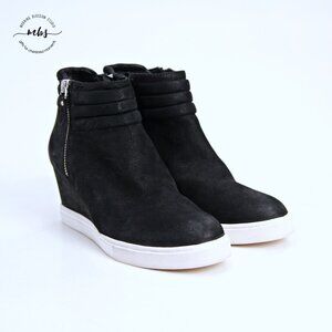 Linea Paolo Felicia Side Zip Hidden Wedge Sneaker Bootie Black White Women 6.5