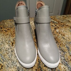 Linea Paolo Freshton High Top Leather Wedge Sneaker Ankle Bootie Gray Size 6.5 M