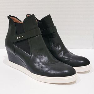 Linea Paolo Freshton Womens High Top Sneaker Size 12 M Black Leather Wedge Boots