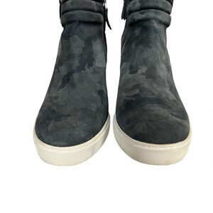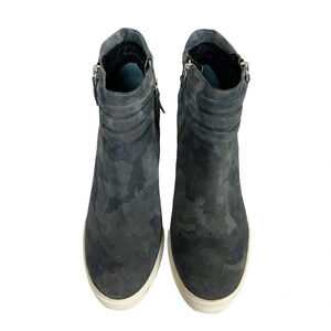 Linea Paolo Frieda Wedge Zip Up Sneaker Size 8.5 Gray Camo Leather Casual Shoe