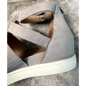 Linea Paolo Gray Leather Hidden Wedge Sandals Womens Size 8