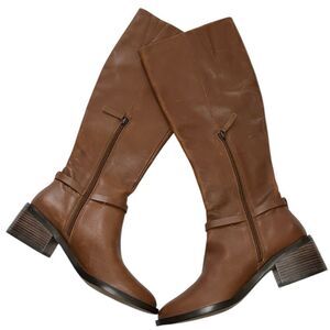Linea Paolo Tan KAMILE Knee High Almond Toe Leather Stacked Heel Riding Boots.Zipper Closure,Approx Heel Height 1.75”.NWOT