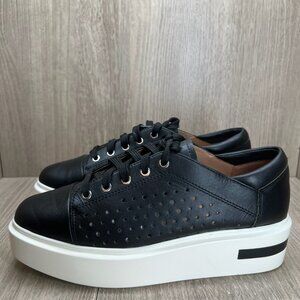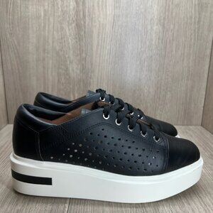 Linea Paolo Kendra Platform Sneaker Women Sz 8M Perforated Leather Lace Up Black